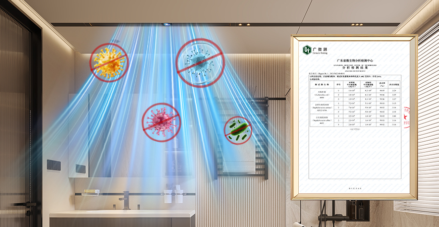 等離子祛除日常細菌*(大腸桿菌除菌率99.96%、金黃色葡萄球菌除菌率99.92%、白色葡萄球菌除菌率99.92%),衛浴空間更潔凈安全。