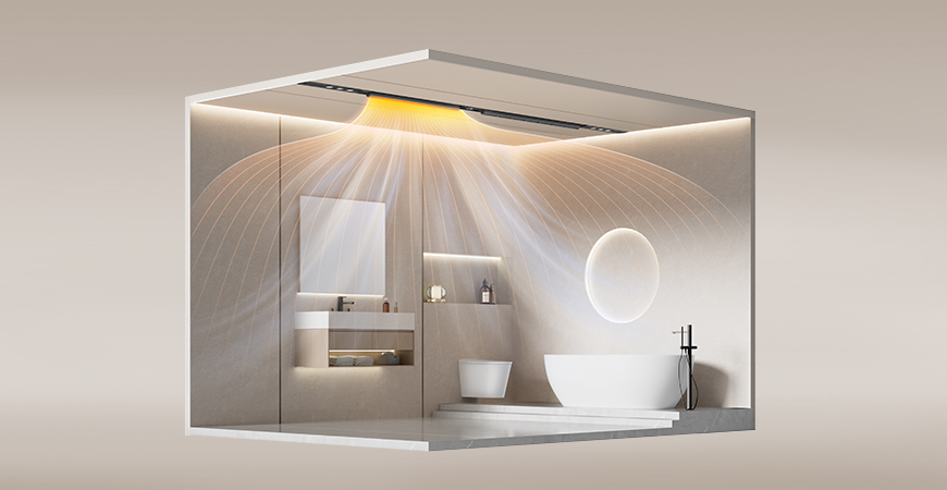 內置VOCs空氣質量檢測系統,24小時巡航檢測空氣質量,若空氣質量降低會自動開啟換氣,衛浴空氣持久清新。