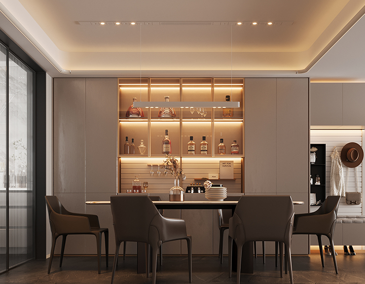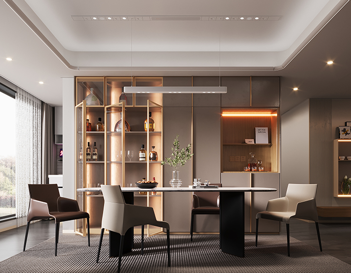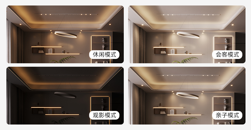 可在客廳營造焦點照明,也可在餐廳烘托用餐氛圍,按需調整,空間場景百搭適配。