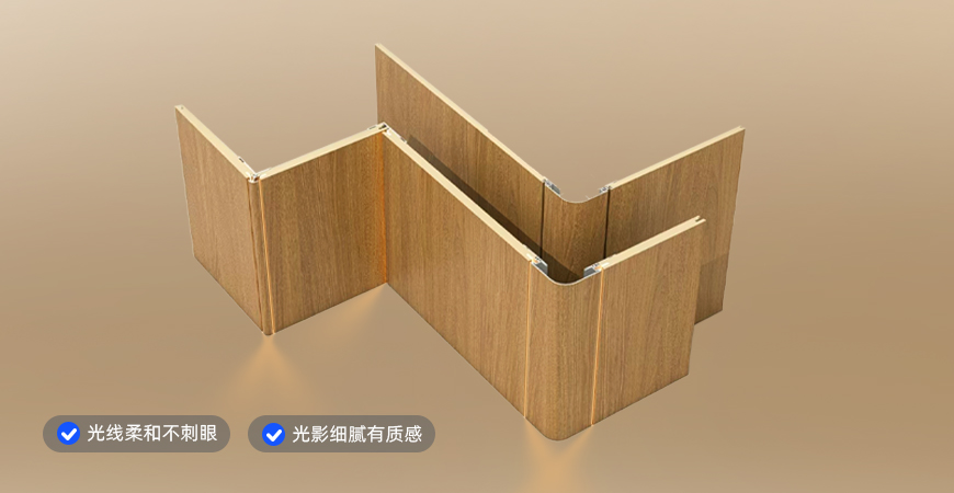 取消傳統燈槽型材依賴,運用燈條直卡式安裝技術,打造隱藏式光源,避免直射炫光與燈珠陰影。