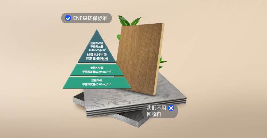5K木品鑒系列符合ENF級*環保標準,基材均使用100%原生新料,