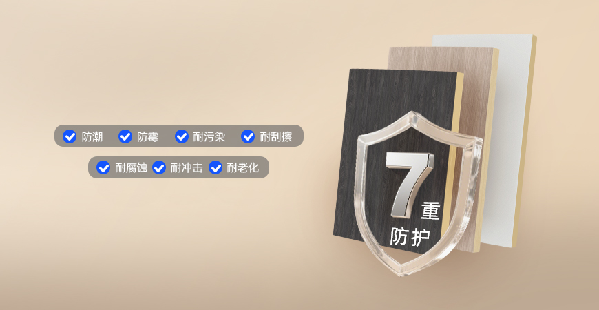 5K木品鑒系列優質性能,防潮、防霉、耐污染、耐刮擦、耐腐蝕、耐沖擊、耐老化,無懼廚房油漬、梅雨濕氣、寵物抓撓,從容應對多樣生活環境。